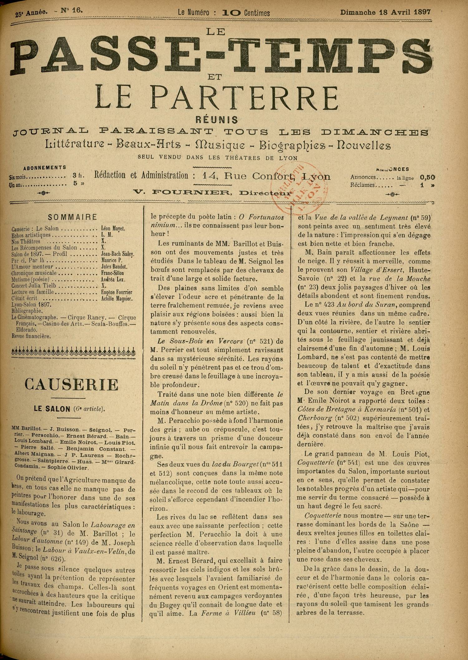 LE PASSE-TEMPS ET LE PARTERRE RÉUNIS (Bibliothèque municipale de Lyon - Documentation régionale, 5611)