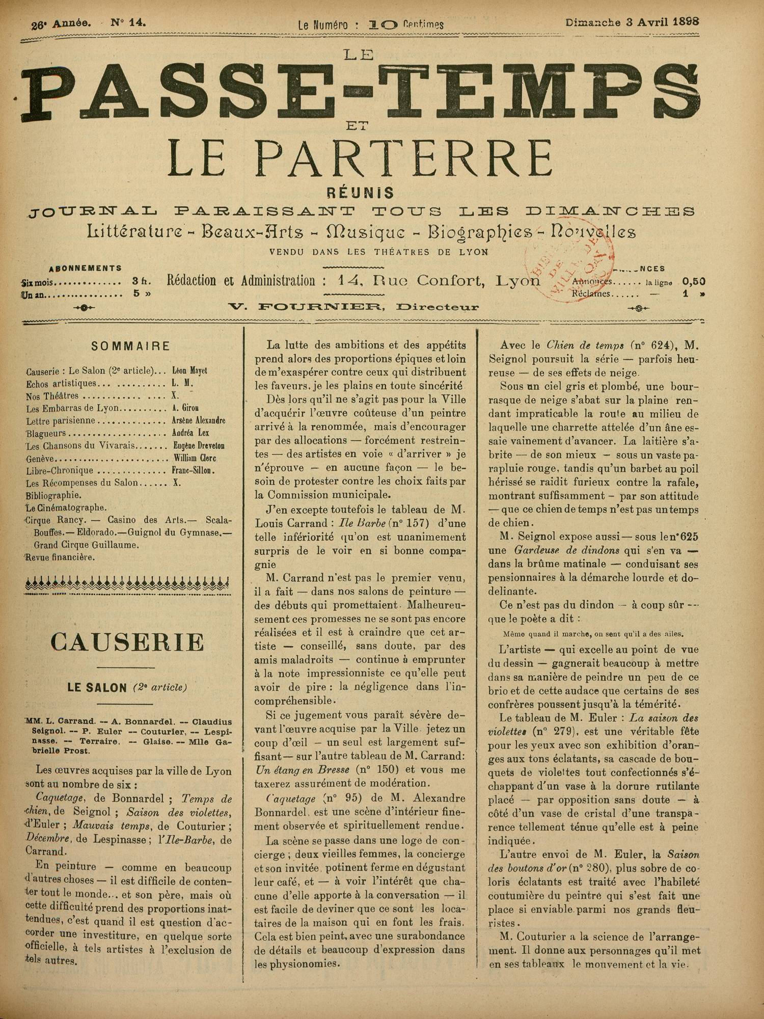 LE PASSE-TEMPS ET LE PARTERRE RÉUNIS (Bibliothèque municipale de Lyon - Documentation régionale, 5611)